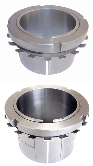 Usada para fixar rolamento de furo cônico em eixo liso (tolerância máxima h10), sem necessidade de apoio. É composta por 3 partes: a bucha, uma porca e uma arruela de trava ou grampo MS. São fornecidas sempre com esse conjunto completo.